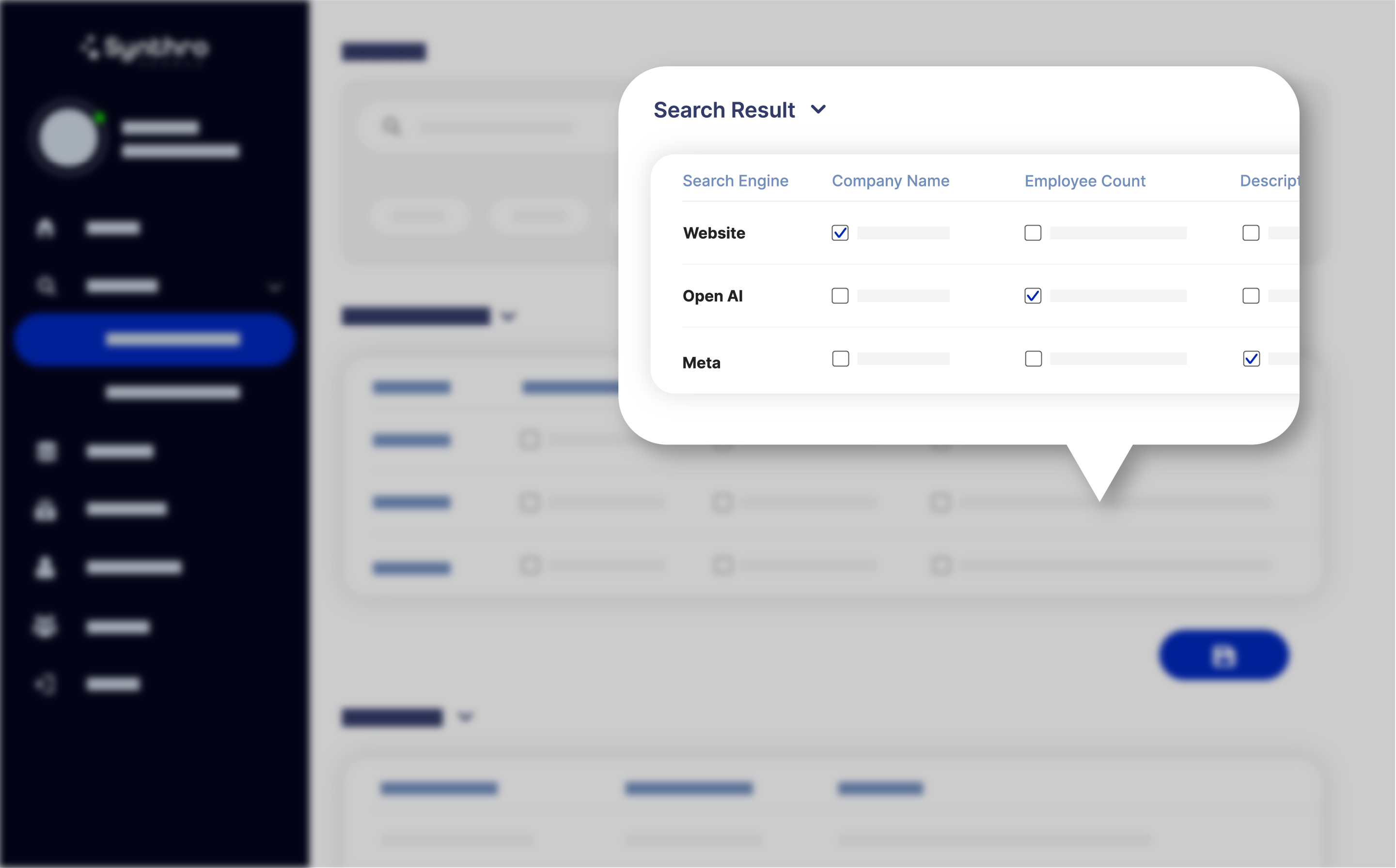 Enter the company's name and website, and choose your AI assistants to tailor searches and retrieve relevant data.